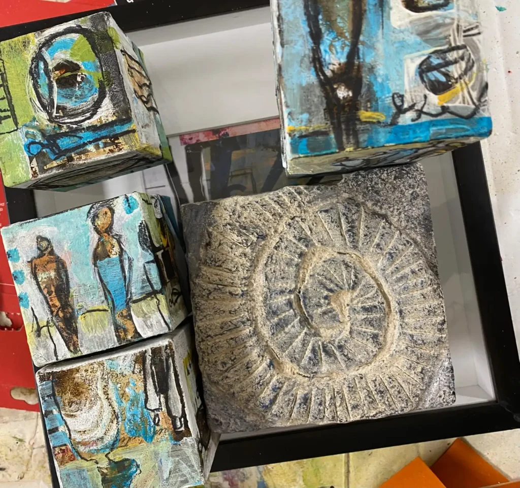 Es kann entstehen: ein Bild, eine Collage, ein Objekt, eine Figur – etwas Kraftvolles oder Zartes.